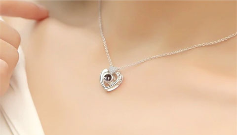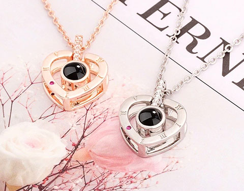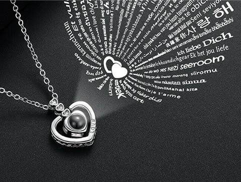 При близком подсвечивании любым источником света, он создает удивительную световую проекцию слов “Я тебя люблю” на 100 языках мира, включая русский язык.